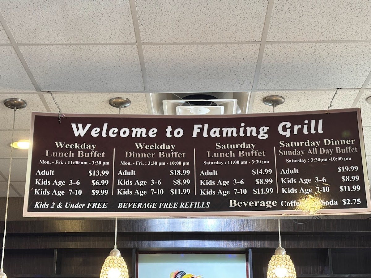 Flaming Grill and Supreme Buffet Menu